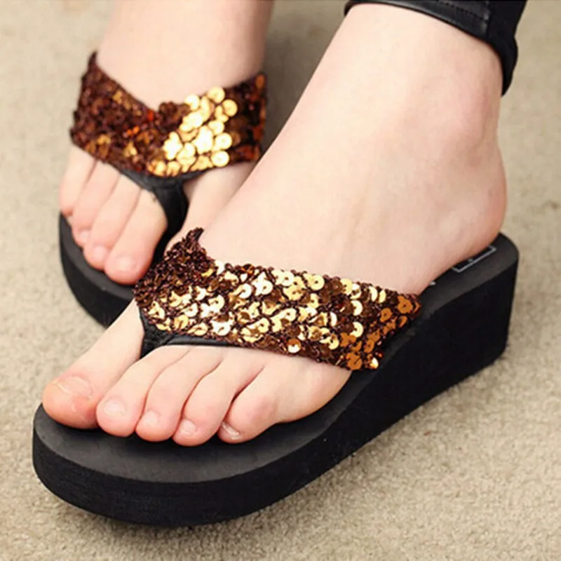 Women beach shoes:Slippers Sequins Cross