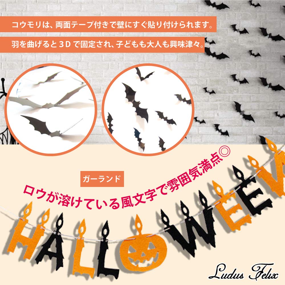 ✅【◎徹底的な雰囲気作りのための商品◎】ハロウィンといえば かぼちゃ 、 魔女 、 コウモリ 、 オバケ ですよね。楽しい雰囲気と ホラー なイメージを持たせる必要があります。①今 人気 の ハニカムボール と ボンボンフラワー でイメージカラーの橙色と黒色を使用し、楽しく おしゃれ 感を出しました。② ガーランド は、文字がろうそく風になっています。ロウが溶けている様子を表現し少し 怖い 雰囲気を出すこだわり。③ こうもり は簡単に曲げられるプラスチック素材を使用。羽を曲げると3Dで固定され、子どもも大人も興味津々。付属の両面テープで壁に貼れるので壁に穴を開ける必要もありません。※剥がすときは壁紙が破れないようご注意ください。