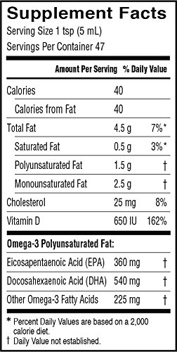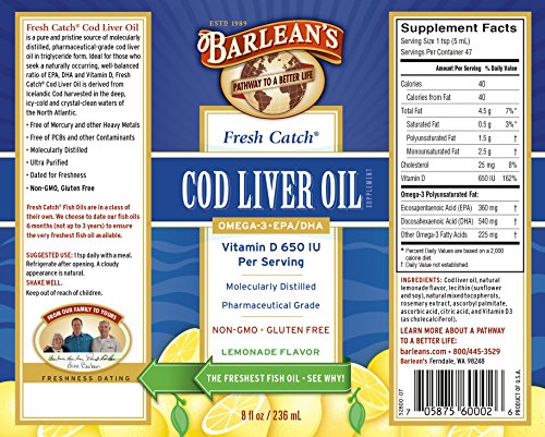 Barlean's Organic Oils Fresh Catch Cod Liver Oil, Lemonade Flavor, 8-Ounce Bottle