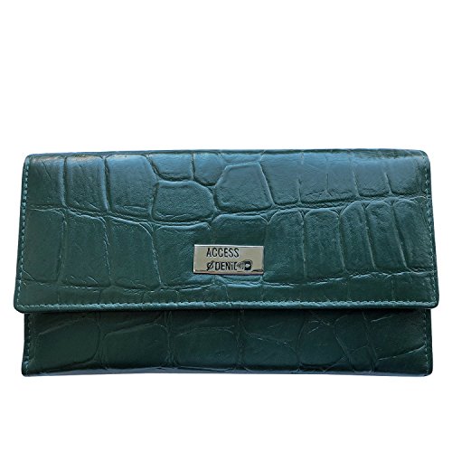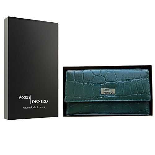 Binding : Apparel Product Description Pebble grain Leather RFID Blocking Access Denied Womens with RFID Checkbook Holder 2-in-1 is lined with RFID safe protective technology to PREVENT ELECTRONIC PICKPOCKETING of your private information. Lock all your private information by storing it safely and securely inside our wallet. Every pocket and fold is lined with our RFID blocking protection. This trifold wallet has a secure magnetic snap closure, zippered exterior coin pocket, 11 card slots, interior zippered pocket and 2 full-length currency pockets. US Passport fits conveniently in wallet, perfect for travel. Includes matching pebble grain leather RFID blocking genuine leather checkbook cover holder which has 6 credit card slots. Both wallet and checkbook holder collectively have 17 card slots. Carry the checkbook cover separately or in the wallet. This wallet is versatile, functional and durable. Arrives packaged in a attractive gift box for all gift giving occasions. RFID chip embedded cards transmit information that can be read by skimmers unless you shield them with our RFID blocking technology. Many credit cards,enhanced driver's licenses, etc. contain RFID chips. Prevent thieves from remotely reading and gaining access to your complete credit and debit card account numbers. Access Denied womens wallets are shielded in and around all pockets and folds. Our exclusive line of custom designed wallets for women are made with the finest grade leather that has been drum dyed, vegetable tanned and hand rubbed to produce a high quality look and feel. Checkbook Cover will fit standard size top tear personal checkbooks with a dimension of 6" L x 3 " W . Access Denied has been manufacturing RFID Blocking secure products since 2008. We offer the best RFID protection wallets available. 0