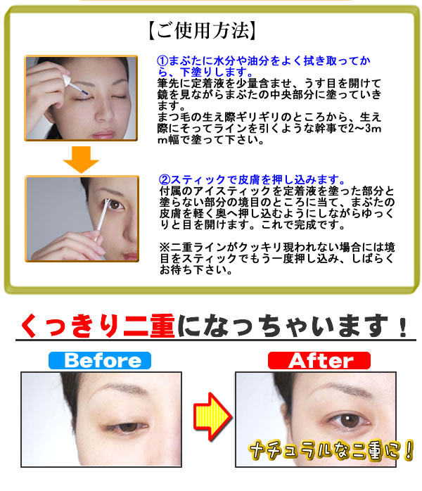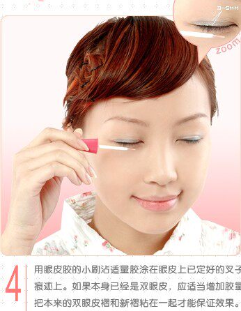 本产品为超薄特粘的一款胶水,天然无刺激。产品里面含有一个小刷子,涂到眼皮上就成透明的了,用后完全看不出,非常自然!
