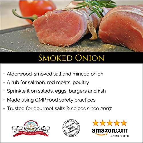 - A blend of sea salt and minced onion, smoked naturally over alderwood