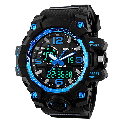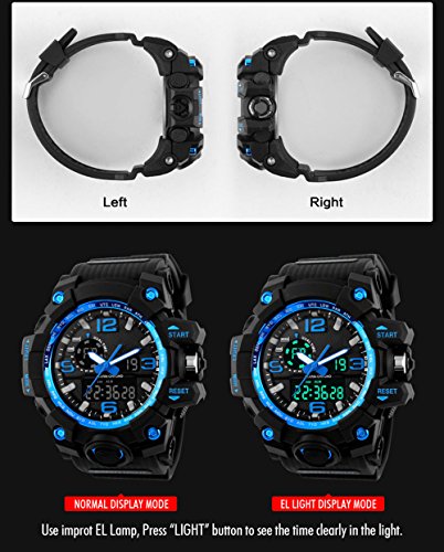 -. Title : Fngeen Men's Large Dual Dial Analog Digital Quartz lectronic Sport Watch 164FT 50M Water Resistant,Blue