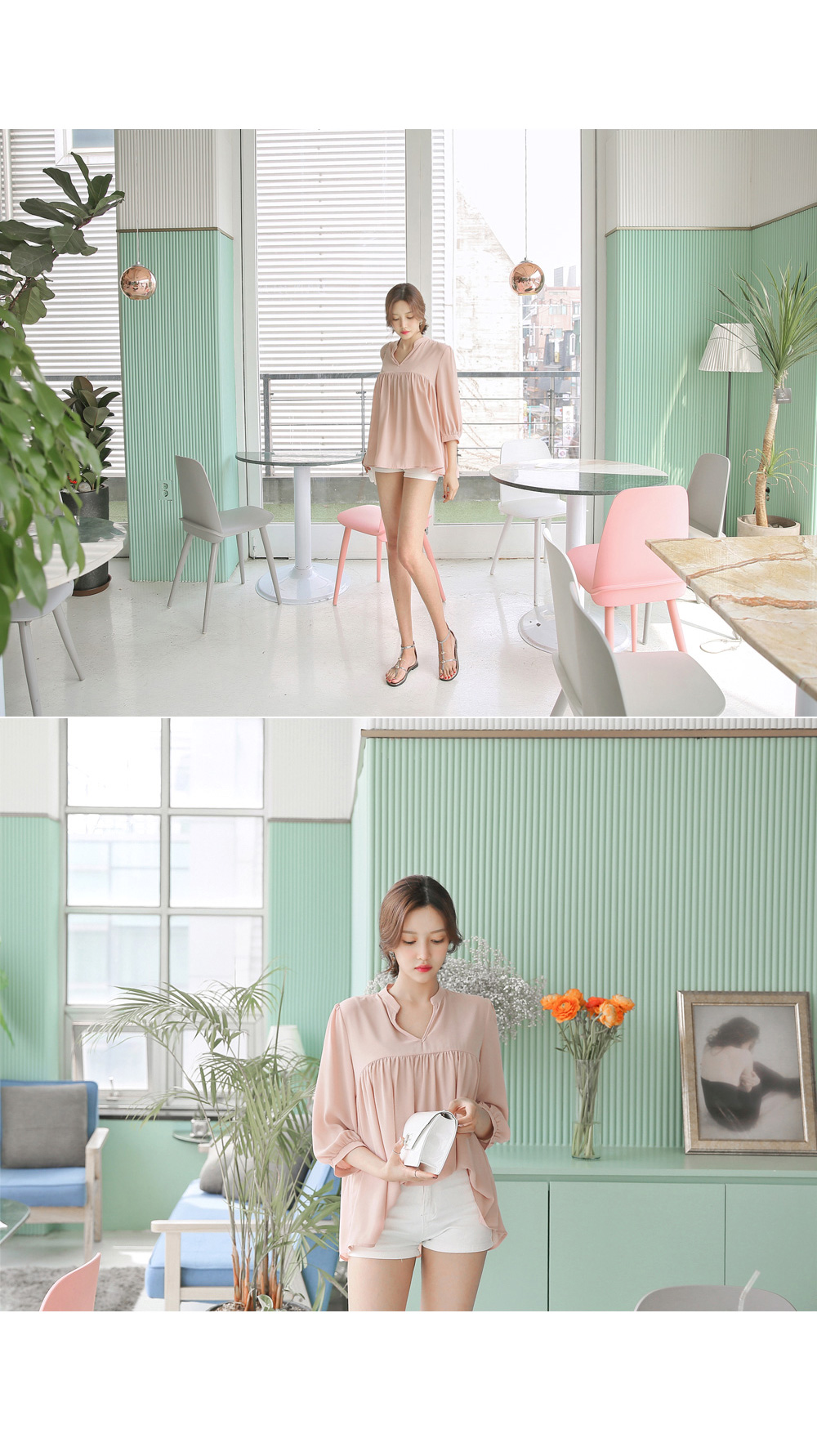 센터 부분 단추와 지퍼 디테일로 오픈, 클로징을 도와주며