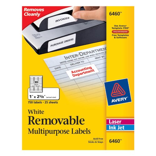 Avery Removable 1 x 2 5/8 Inch White ID Labels 750 Count (6460)