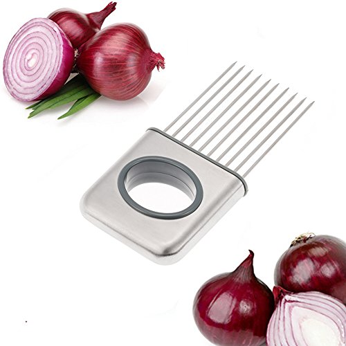 -. Title : Anself Stainless Steel Onion Holder Slicer Potato Cutter Fork Slicing Odor Remover