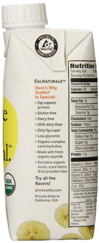 -. Binding : Grocery -. Brand : Svelte -. Color : Parent -. Feature : All of the creaminess of your favorite milkshake without the calories, Svelte will leave you feeling positively beautiful throughout your day, Gluten free, We create our shakes with pure fresh organic soymilk, and organic complex carbs for sustained energy -. IsAdultProduct : 0 -. Label : CalNaturale Svelte -. Manufacturer : CalNaturale Svelte -. NumberOfItems : 8 -. PackageQuantity : 8 -. ProductGroup : Grocery -. ProductTypeName : GROCERY -. Publisher : CalNaturale Svelte -. Studio : CalNaturale Svelte -. Title : CalNaturale Svelte Organic Gluten Free Protein Drink