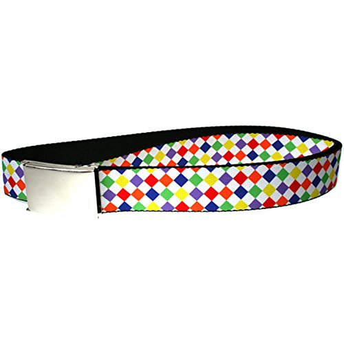 Binding : Apparel Product Description A multi-colored neon diamonds design covers this standard black 42 belt, featuring a silver metal web slide buckle with built-in bottle opener for an accessory with striking retro style and unmatched function on the go. Made from durable 100% nylon canvas fabric. 0