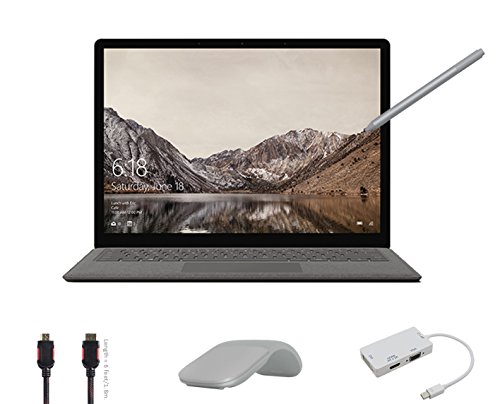 -. Feature : A NEW GENERATION OF CPU: Features Intel's 7th generation of processors for unprecedented power and responsiveness. / NEW 2017 WINDOWS 10 S: Streamlined for security and superior performance. Best Windows ever for schools and can easliy switch to windows 10 Pro for free until Dec 31,2017 / UP TO 14.5 HOURS OF BATTERY LIFE: for all day power on the go / SLEEK, ELEGANT DESIGN, ULTRA-THIN AND LIGHT: It fits easily in your bag, Luxurious Alcantara fabric-covered keyboard / Bundle includes: Surface Laptop,Surface Pen Platinum, Surface Arc Mouse Light Gray, Mini DisplayPort Adaptor and HDMI Cable