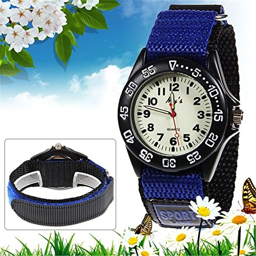 Studio : Jewtme Publisher : Jewtme Binding : Watch Product Description Gender: Boys girls childrens Style: Sport or casual Movement: Electronic and Quartz Water-proof: 3ATM Case material: Plastic Band Material: Nylon Clasp type: velcro Case diameter: 30mm / 1.18in Thickness of case: 8mm / 0.31in Band width: 22mm/ 0.87in Color: as picture Thickness of band: 1mm Suitable for wrist(perimeter): 150 to 170mm/ 5.91in-6.69in(Suitable for children 3-9 years old) Features: Quartz wristwatch with velcro nylon strap, it's easy for chlidren to take it on or off, a good gift for kids. Dial and hands are luminous Long battery life Package include: 1 x watch 1 x gift box 0