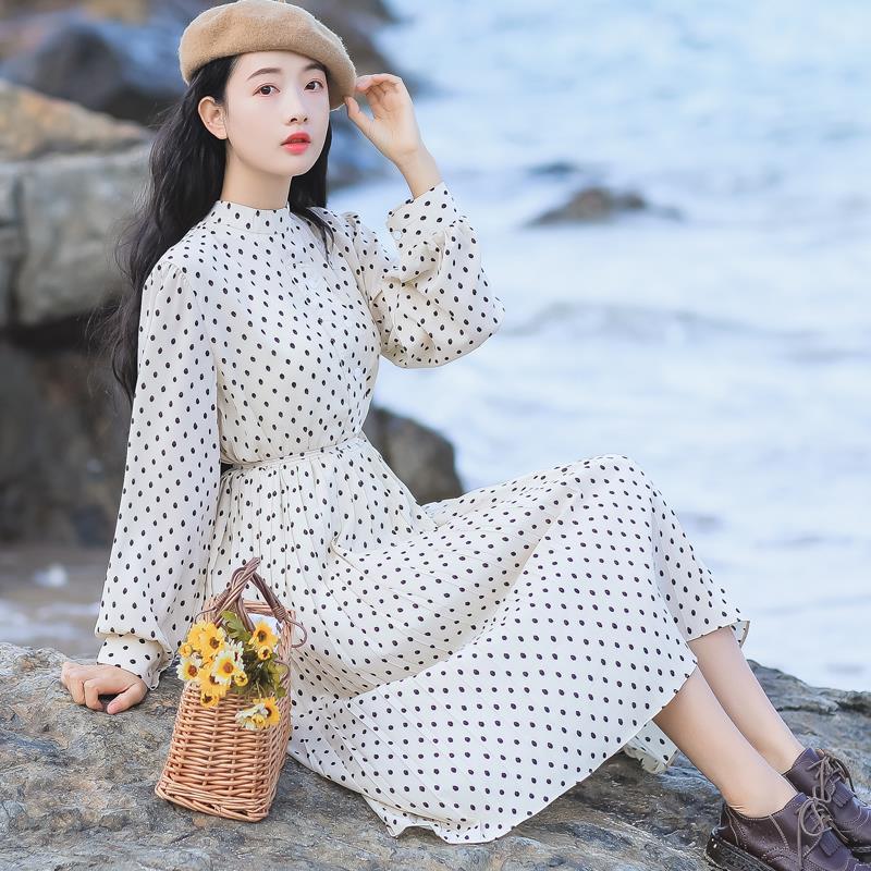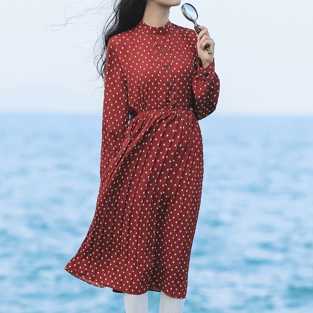 ハイネックタイプで上品に、袖のボリューム感とのバランスがGOODなワンピースです♪