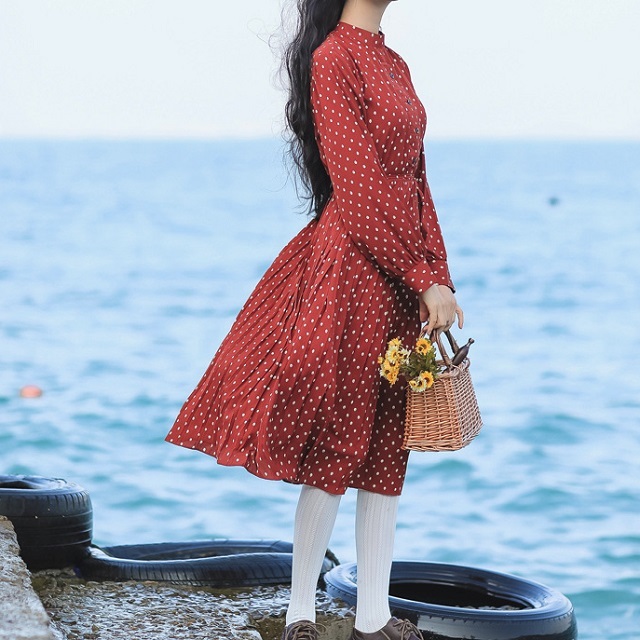 スカート部分はプリーツ仕様でふわりエアリーなシルエットがガーリーな1枚です。