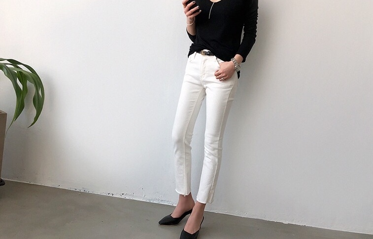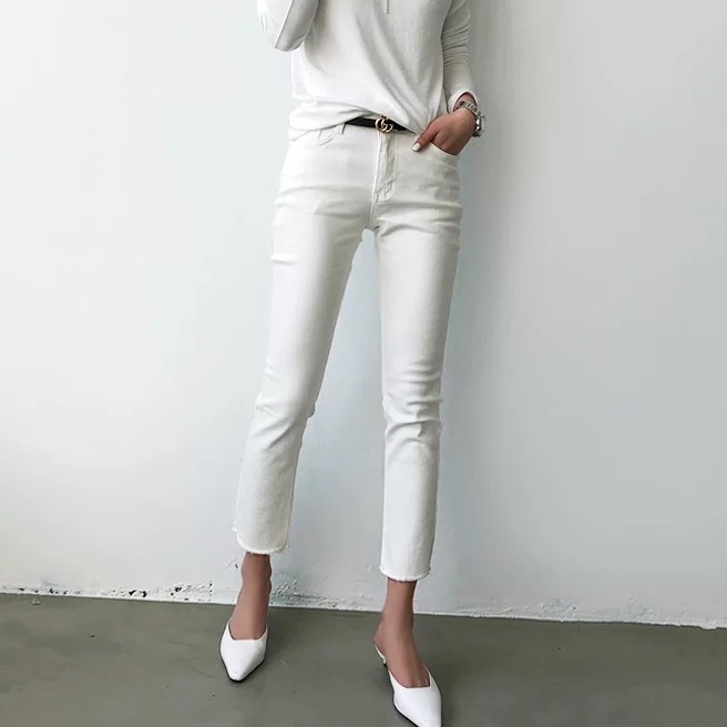裾口の自然なカットオフディテールがポイントになりシックな印象ですね。