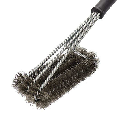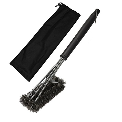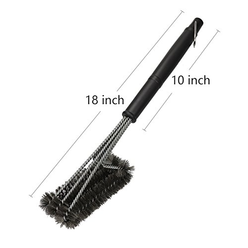 Unique Design - This 18" long barbecue brush has three brushes in one, each with its own equivalent stroke. Be prepared to clean every bit of residue with its innovative 360 degree rotator.