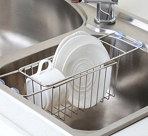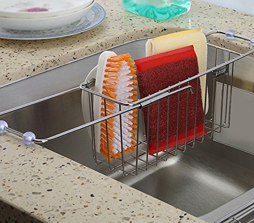 haoun Stainless Steel Sink Draining Rack Adjustable Kitchen Over the Sink Drying Shelf for Kitchen Dish Brush Sponge Cleaning Cloth Towel Holder