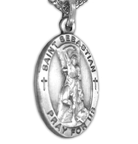 -. Title : Sterling Silver Oval Saint Sebastian Patron of Athletes Medal, 7/8 Inch
