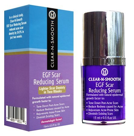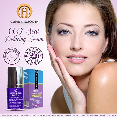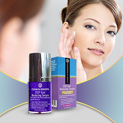-. Feature : ACNE SCAR REDUCTION: Reduces density of acne scars and the skin redness caused by acne. Works faster in combination with a skin lightening cream / DIMINISH SCARS and STRETCH MARKS: Reduces density of scars left by burns, wounds, surgery and diminishes the appearance of existing stretch marks / NOBEL P.R.IZE in Medicine EGF: Awarded to Stanley Cohen, American biochemist and Rita Levi-Montalcini, neurobiology, for the discovery of a key cellular activator and its vital function to the health of human skin, named EGF - Epidermal Growth Factor. Powerful, Natural, and Vitality-boosting, EGF serum works to stimulate the skin's own cell renewal, while nourishing and protecting the skin, to produce visible long lasting effects on your skin / LAB TESTED and CLINICALLY PROVEN: We formulated our EGF Serums to work, effectively. As a proud USA manufacturer, we work closely with our customers - you, so you can see your desired results. Try our EGF Serum on its own, or in combination with our other products / WORKS FASTER when combined with Clear-n-Smooth Beauty Balm. Apply Serum first, let dry, them apply cream to help lighten scar