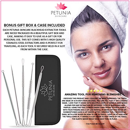 -. Title : Professional 5 Piece Set Blackhead and Acne Remover Kit Comedone Extractor Tools Treat Facial Blemishes, Whiteheads, Pimples and Zits | Includes Giftbox and Travel Case