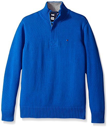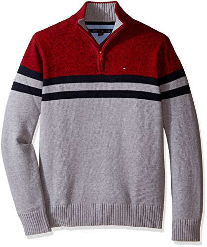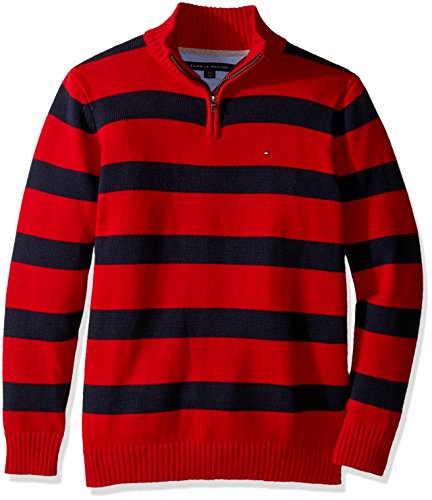 Tommy Hilfiger Connor half zip sweater with 2x2 rib detailing on cuffs and waistband.