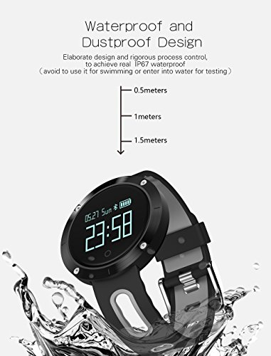 ⌚【FUNCTIONS】: Blood pressure monitor, heart rate monitor, calories, pedometer, distance, time&date, sleep quality monitor, sedentary reminder, hand raise light up, waterproof IP67, call&SMS reminder, Facebook&Twitter&Whatsapp message reminder, alarm.