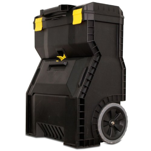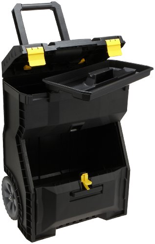 Get 2 storage solutions in 1 with the Stanley 2-in-1 Mobile Work Center! This handy work center includes an extra large toolbox and storage bin in a portable size.