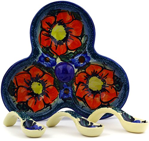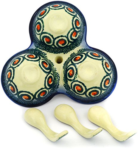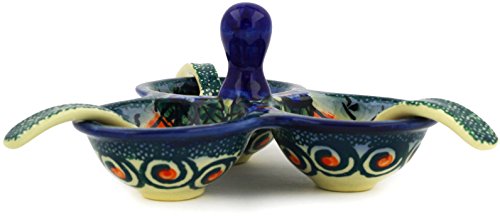 Studio : Boleslawiec Publisher : Boleslawiec Binding : Kitchen Product Description Polish Pottery Condiment Server with Spoons 5-inch Havana UNIKAT Dimensions: 4¾" wide, 5" long, 2¾" high Polmedia Polish Pottery Stoneware is: * Hand crafted and hand painted in Boleslawiec, Poland * Microwave safe, dishwasher safe, oven safe up to 480 F, freezer safe * Lead and cadmium free * Crack and chip resistant * Intended for everyday use, easy to clean * Highly collectable About Polish Pottery Polish pottery is known for its versatility in the kitchen and on the table. It is safe for use with food in the microwave, freezer, oven and dishwasher. Polish stoneware is resilient to abrasives making it durable and resistant to scratching or chipping. It distributes heat evenly for perfect baking and is also nonstick for easy clean-up, making it easy to care for. The bright patterns never fade, and are offered in thousands of variations to mix and match. It is this combination of function and beauty that makes Polish pottery so appealing. The pottery is fired in electric and gas kilns at temperatures exceeding 2200 degrees Fahrenheit. This results in a stoneware that is meant to resist aging and provide lasting beauty that stands the test of time. Polish stoneware is lead and cadmium free. Polish Pottery is hand crafted and hand painted in the Boleslawiec region of Poland. This region is famous for its naturally found white clay which artisans have used for centuries to craft this durable and beautiful stoneware. Each piece of pottery is carefully formed and painted by hand to ensure that exceptional attention to detail is paid to each piece. The most beautiful and intricate patterns are called UNIKAT patterns. These patterns bear the artist's signature. 0