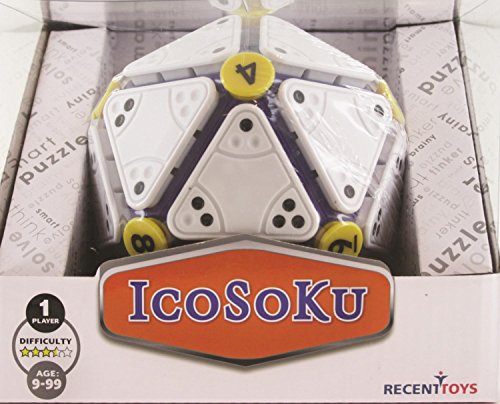 Studio : Recent Toys Publisher : Recent Toys Binding : Toy Product Description Ages: 6 ICOSOKU is a brilliant Brainteaser with literally thousands of challenges. Place the number buttons randomly, then match the dots to the numbers. First remove all the dotted tiles and number buttons. Then place all 12 number buttons randomly on the Brainteaser. Now position the 20 dotted tiles so that all the dots surrounding each number button add up exactly to the number on the button.You’ve succeeded when you’ve placed all the dotted tiles correctly so the numbers match the surrounding dots, with no dotted tiles left over.To create a new challenge simply swap a few number buttons and you have a new challenge to solve! Endless hours of fun! Inventor:? Andrea Mainini