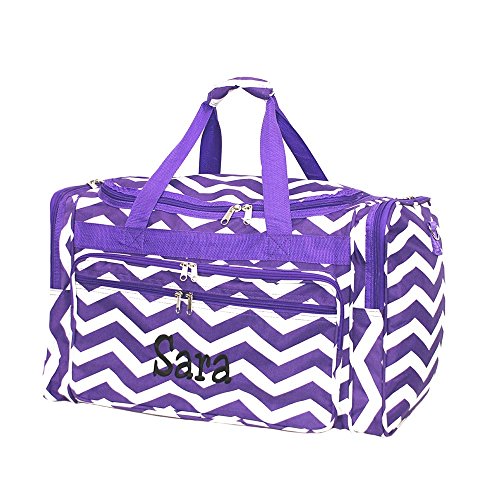 -. Brand : LD BAGS -. Color : purple -. Department : womens -. Feature : Personalize with Name or Initials / Zipper Pocket on Front / 2 End Zipping Compartments / Shoulder Strap and Carry Handles / Large Size: 22" x 13" x 11" -. Model : DCPURT22YH -. PackageQuantity : 1 -. ProductGroup : Apparel -. ProductTypeName : LUGGAGE -. Size : Large -. Title : Personalized Purple Chevron Weekender Duffle Bag 22 Inch