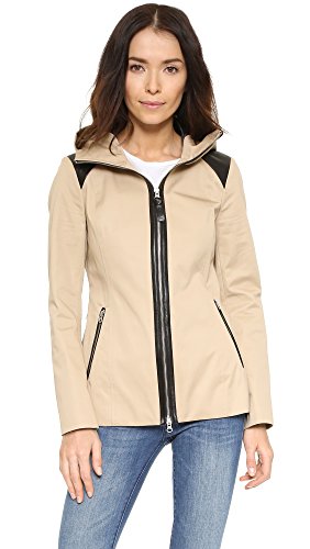 A slim-fitting Mackage jacket in weather-resistant twill with leather trim. Snorkel hood. Zip placket and 2 front pockets. Lined.