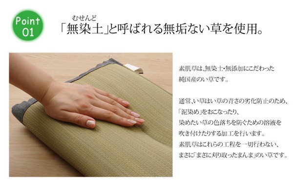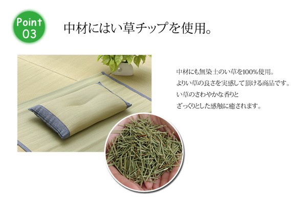 【素材】側地=い草(九州産) 中材=ポリエチレンパイプ【ヒバ練込】 ヘリ=綿100%