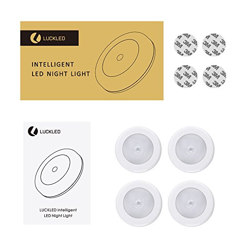LUCKLED Motion Sensor Light, Battery Powered LED Closet Night Light Stick-Anywhere Lighting for Hallway, Bathroom, Stairs, Bedroom - Pack of 4 (Cool White)
