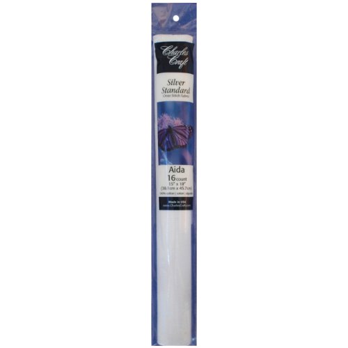 DMC silver label aida 16 count soft tube is 100-percent cotton fabric. Its precise square-patterned weave with visible stitching holes makes this fabric easy to use and allows your needle to easily glide through the holes. The number or count indicates how many squares are available per-inch of fabric. Each square represents a cross stitch. The smaller the fabric count the larger the holes. This fabric has 16 stitches per-inch. DMC Aida fabrics have a wonderful finish and are available in a variety of types. It is packed in soft tubes, a plastic sheath that fits more eaches per peg hook than the traditional hard tube. It can be washed in 60-degree celsius, 140-degree fahrenheit water. Dry flat. If necessary iron between two towels. Available in white color. Measures 18-inch length by 15-inch width.Feature