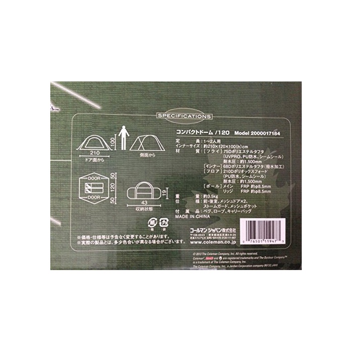 원본상품명: Coleman(コルマン) コンパクトドム /120 2000017184