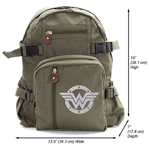 -. Title : Wonder Woman Logo Army Sport Heavyweight Canvas Backpack Bag