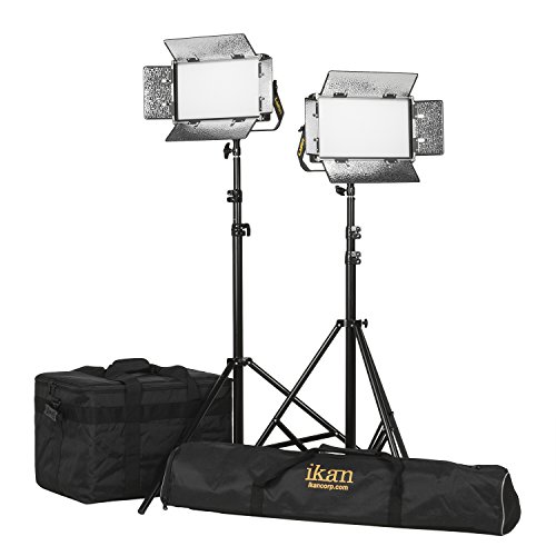 Ikan LW5-2PT-KIT 2-Point Soft Panel LED Light Kit with Gold & V-Mount Battery Plate, Black