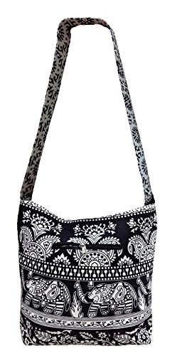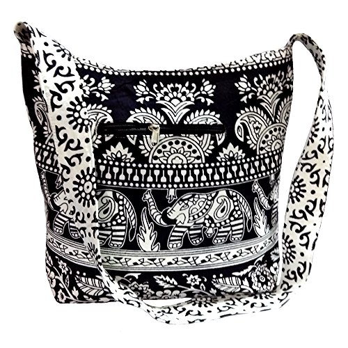Hippie Boho Vintage Elephant Shoulder Messenger Bag, Boho Casual Cotton Lightweight Large Capacity, "Traditional Looks"