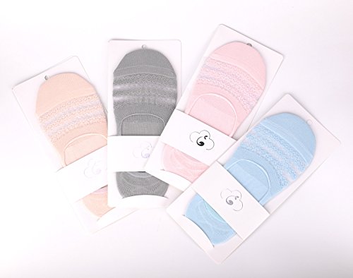 -. Title : Flammi 4 Pairs Garland Lace No Show Liner Socks Boat Line Nonskid Heel Grip