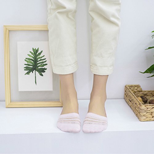 -. Feature : Breathable, sweat-absorbing fabric, comfortable for daily wear / Features pretty lace garland at forefoot / Heel added nonslip technology, Nonskid silicone grip on heel and elastic with high stretch at top line of heel, prevent slipping in shoe / Elastic no show socks fits shoe size women 6-10 (US) / Perfect for your loafers, sneakers, sport shoes, boat shoes. Especially, suitable for youth girls