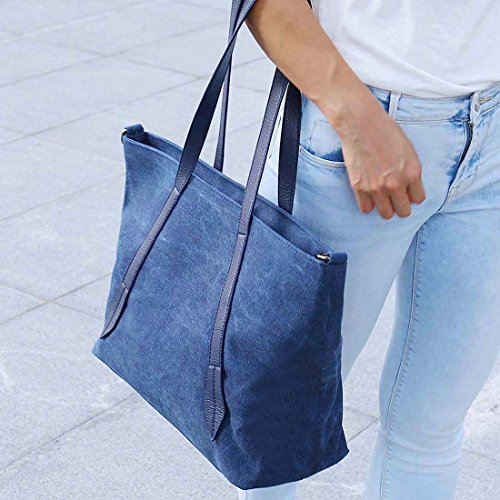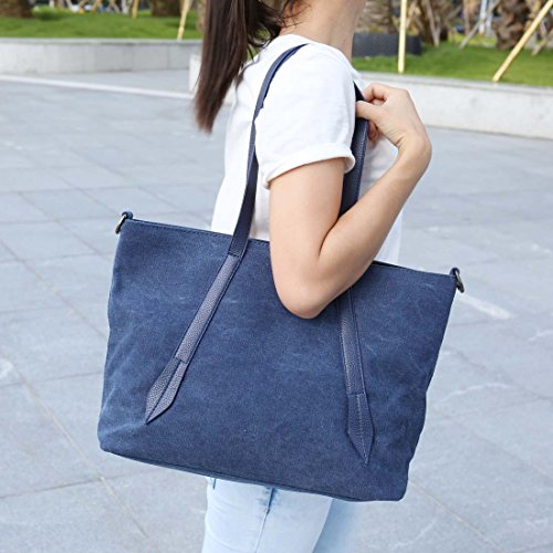 BMC Womens Canvas Material Crossbody Strap Large Double Top Handle Tote Handbag