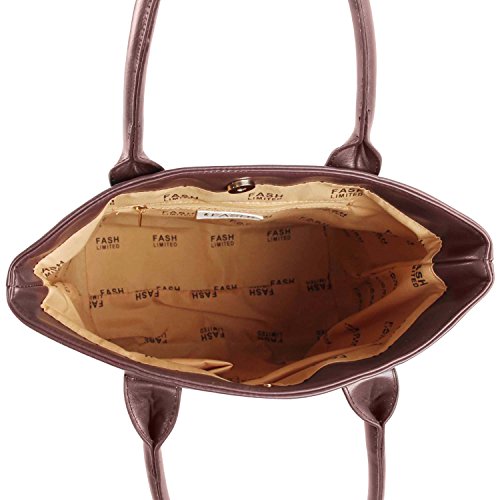 This Handbag by FASH is the best accessory for every working woman. This spacious tote has been designed keeping in mind the essentials that a woman carries to work on a daily basis, which includes cosmetic pouch, mobile, wallet etc. This bag features Dual Rolled Tote Handles with 9.4"" Drop, Gold-tone Magnetic Snap Button Closure, Fabric Lined Interior with one zippered and two open/mobile wall pockets.