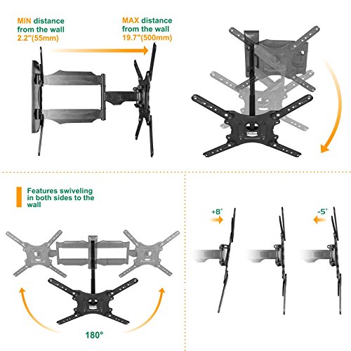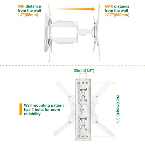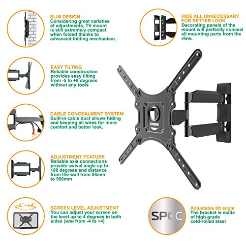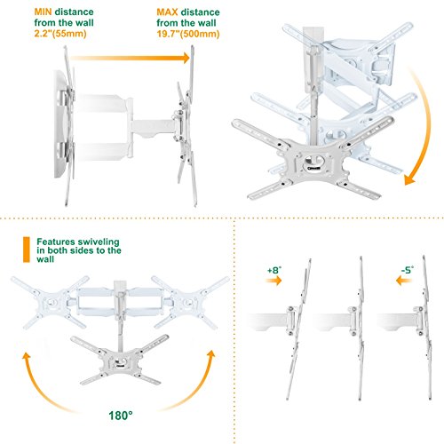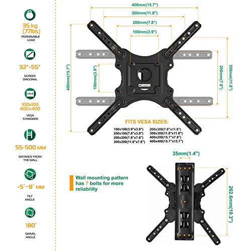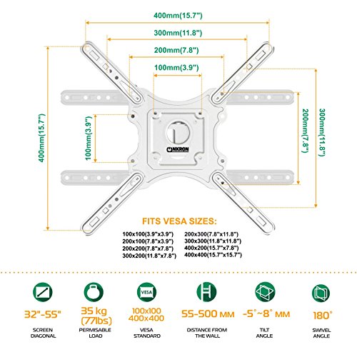-. Binding : Electronics -. Brand : ONKRON -. Feature : Universal mount fits most LED LCD OLED Flat Panel and curved TVs with diagonal screen 32- 70 inch / Compatible with VESA mounting patterns from 100 x 100 mm (min) to 400 x 400 mm (max) / Full motion support for best viewing angles - extends, swivels and tilts with one-touch / Fully retractable ultra slim profile mount - distance to the wall from 20 to 2 inches, hides wires / Supports monitors up to 88 lbs; comes with gold-plated 6.5 ft HDMI cable and bubble level -. Label : ONKRON -. Manufacturer : ONKRON -. Model : M4-P -. MPN : M4-P -. PackageQuantity : 1 -. PartNumber : M4-P -. ProductGroup : Speakers -. ProductTypeName : AV_FURNITURE -. Publisher : ONKRON -. Studio : ONKRON -. Title : ONKRON TV Wall Mounts for 32-55 and 32-70 TVs (M4 BLK, M4 WHT, M5L BLK)