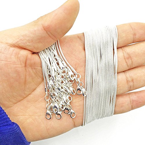 Mmei 25 Pcs Silver Plated Neck Snake Chain Necklace with Lobster Clasps for DIY Jewelry Making 18 Inches length 1.2 mm Thick
