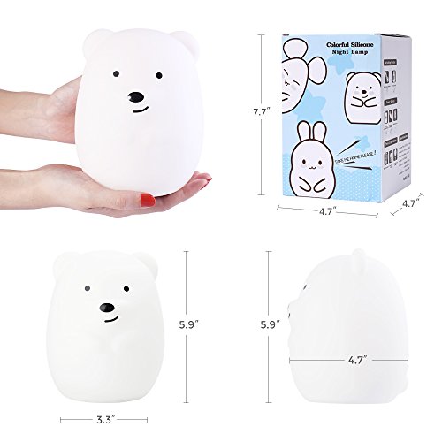- Perfect Sweet Gifts -- This colorful night lamp is safe, adorable and cool, definitely a fabulous ideal gift for babies, kids, girls and anyone you love. The little cute bear could lighten your room, warm the dark, comfort your baby, and create a romantic atmosphere. You can place it in bedroom, baby room and other romantic places, you can also use it for home display and night decoration.