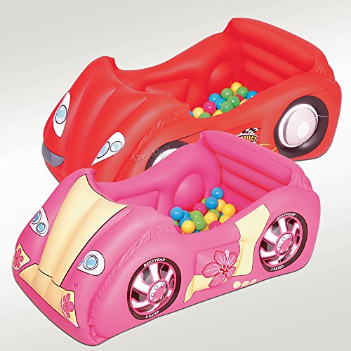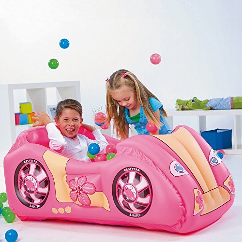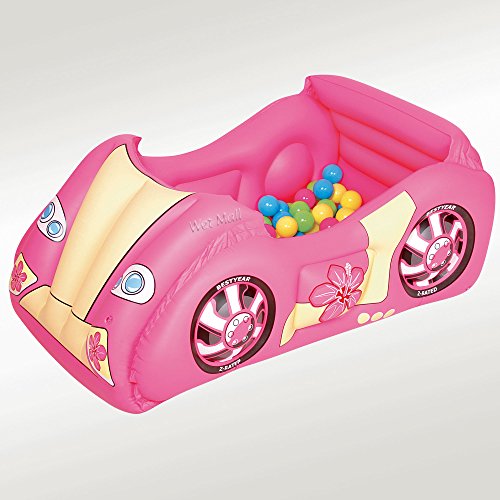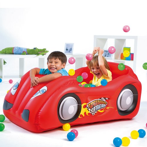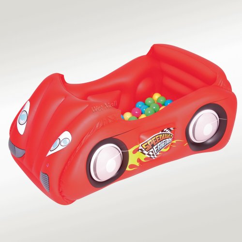 Product Description This inflatable race car by Bestway features safety valves, sturdy pre-tested vinyl, and sturdy I-beam construction. It includes 50 game balls and a repair patch. 0