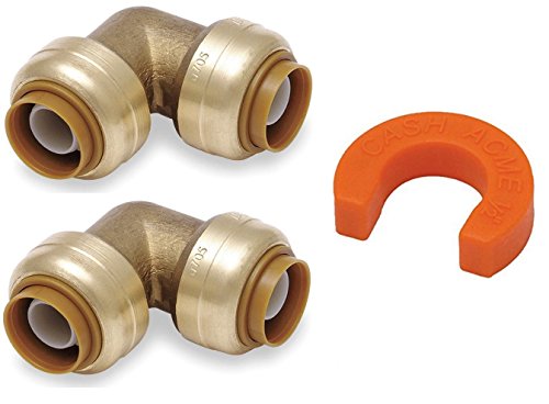 Sharkbite 1/2" Elbow (2) U248LFA Coupling 2 Pack and Disconnect Clip, Push-Fit lead free brass fittings for residential and commercial plumbing applications