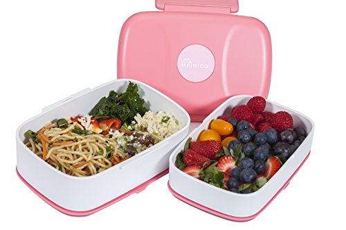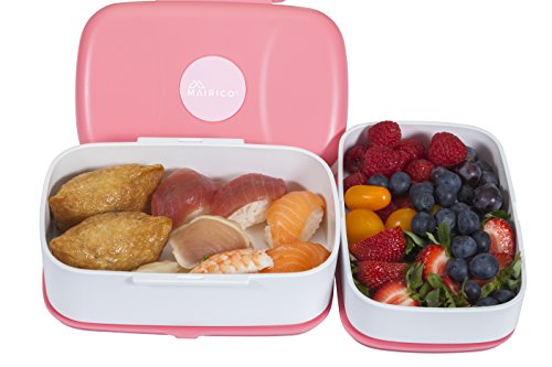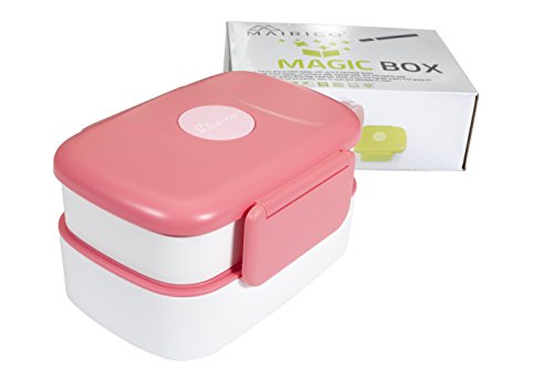 MAIRICO Premium Stackable Bento Lunch Box (Pink) for Adults and Kids - Beautiful, 2 Stackable Layers, BPA free, Leak-proof, Microwave, Freezer and Dishwasher Safe