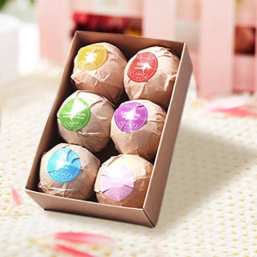 -. Feature : Six Flavor Bath Bombs Included: Energize, Zen, Wellness, Strength, Yoga and Cozy Night. Six different spa treament for you. / Ingredient: Combined with baking soda, kaolin clay, dead Sea and epsom salts, shea butter and sunflower oil, these six bath bomb provide you with six wonderful bath treatments. 100% Natural Ingredient. / Benefit a lot for Health: The Bath Bomb will dissolve, releasing gentle bubbles of all-natural citric acid and deep moisturizers of virgin shea butter, sunflower seed oil and Vitamin E, alongside the detoxing mineral salts. / Relaxing Bath Aromatherapy is fun and easy to use. / Best Gift For Everyone: Hot bath benefits a lot for human body, with a rich-mineral bath spa is even more luxouries. Fit for every season, expcially in cold winter and sP.R.Ing.