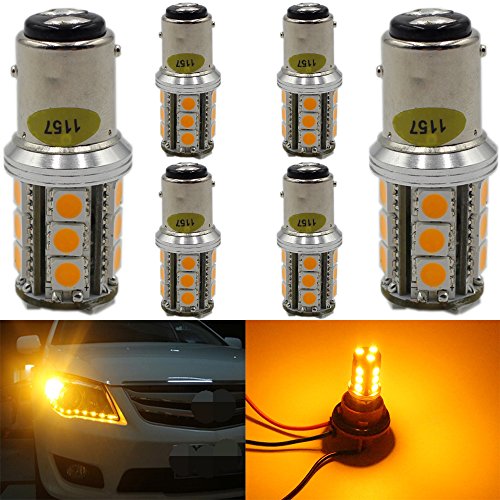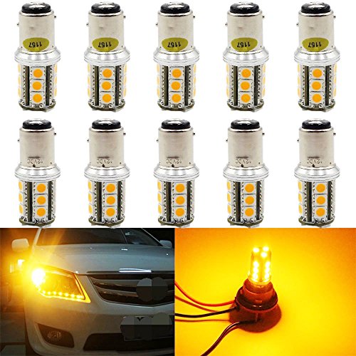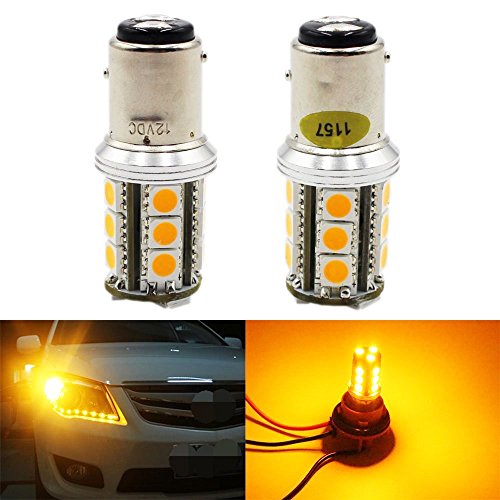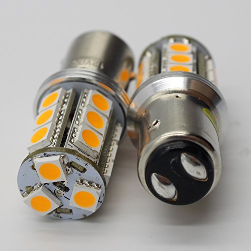 2-Pack 1157 BAY15D Amber/Yellow LED Light- 300LUMS,10~12V-DC- AMAZENAR® Imported 5050 Chips 18-SMD AUTO Replacement Bulb 2357 /2057 / 7528 / 1034 Base For Turn Signal, Brake Light,Rear Reverse Lights