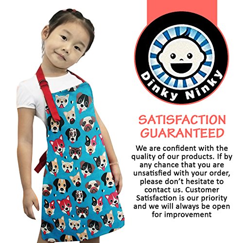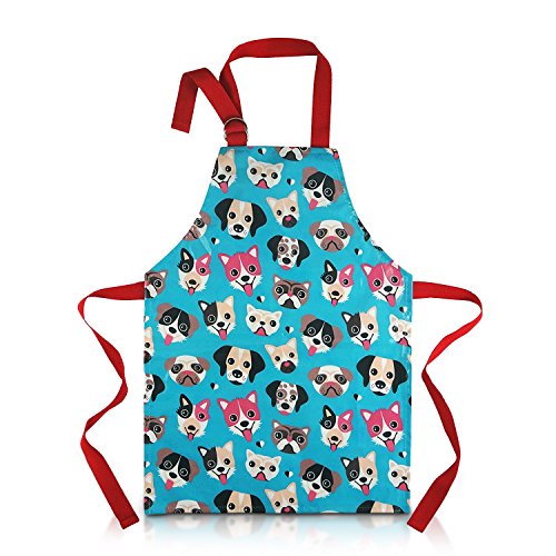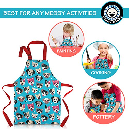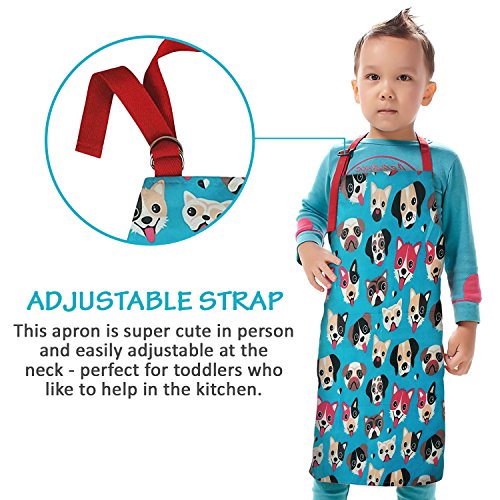 Cute Apron for Toddler - Waterproof PVC Pinny Printed in Unique Fun Dog Print for Little Cooks and Artists Age 2- 4 (small, blue)