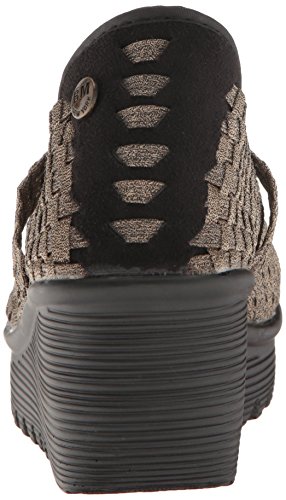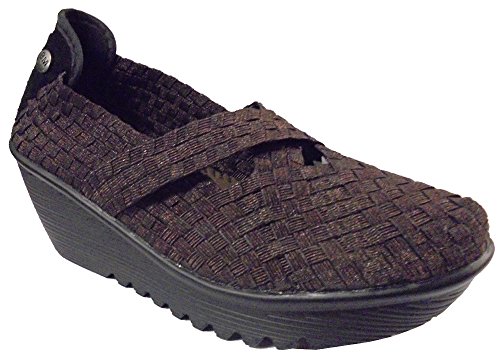 Product DescriptionThe cleopatra wedge heel slip on with criss cross strap detail features a handwoven elastic upper for a comfortable yet secure fit. memory foam footbed gives cushioned support. 2 1/2 inch heel and 1 inch platform.0